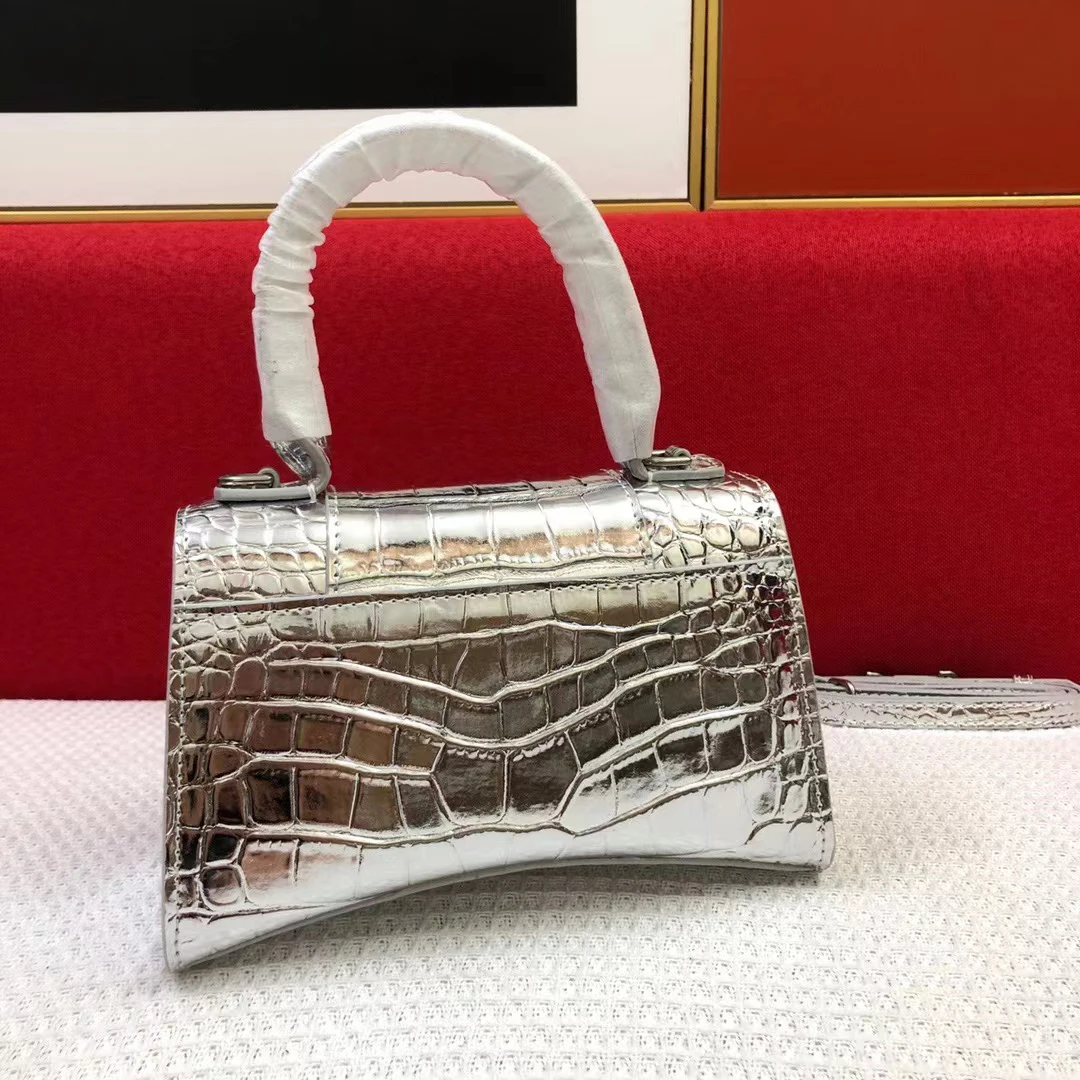Luxury Design Classic Rivet Hourglass Women's Diagonal Genuine Cow Leather Fashion Handbag Crocodile Pattern Shoulder Bag