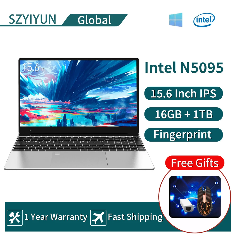 Intel Laptop 15.6 inch N5095 16GB RAM 512GB SSD Business Netbook Windows 10 Gaming Notebook Gamer PC Fingerprint Unlock