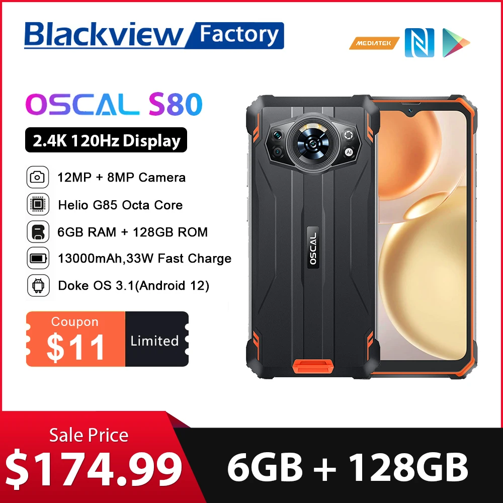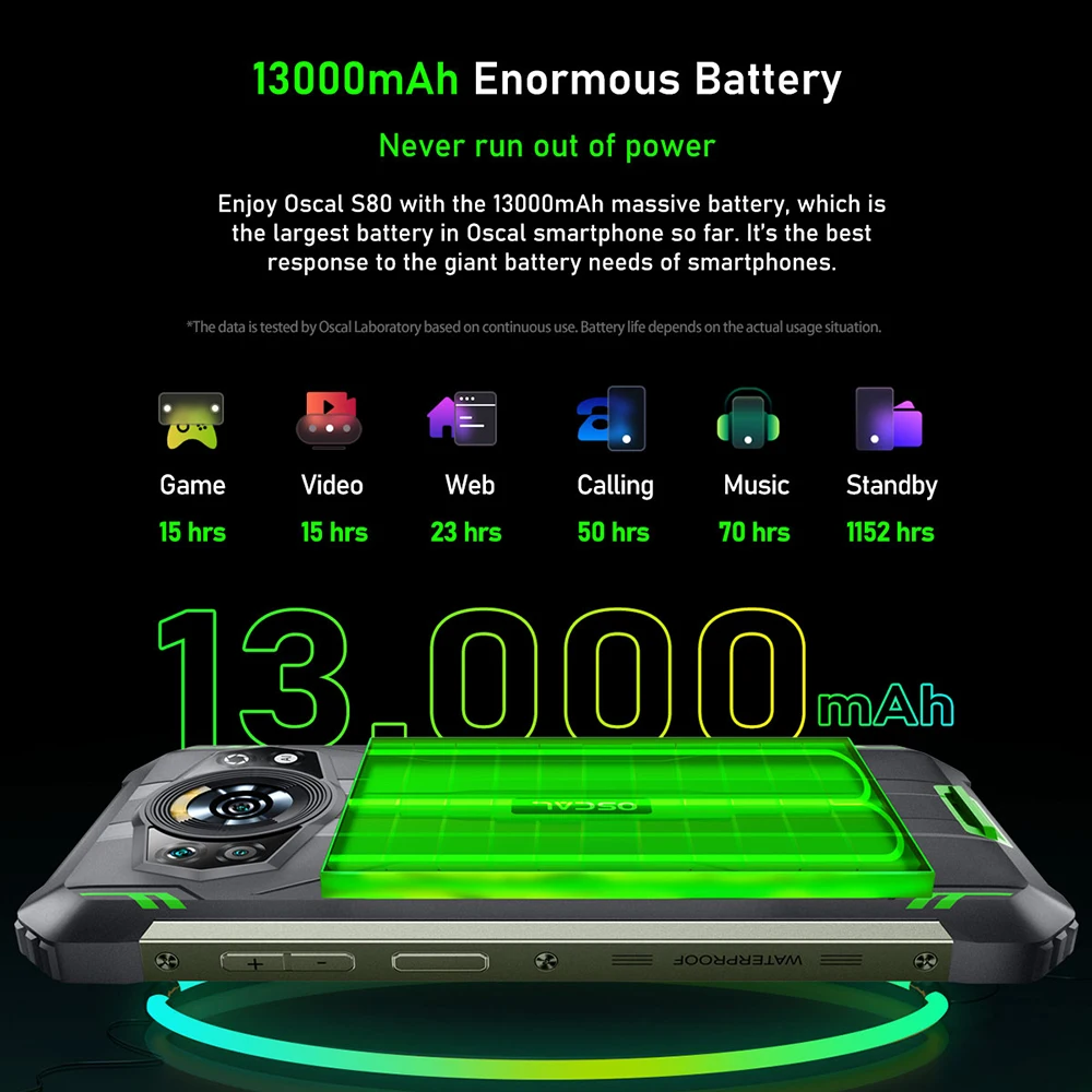 Blackview Oscal S80 13000mAh Rugged Smartphone 6GB 128GB 33W Fast Charge 6.58 Inch Screen Mobile Phone Android 12 NFC Cellphone