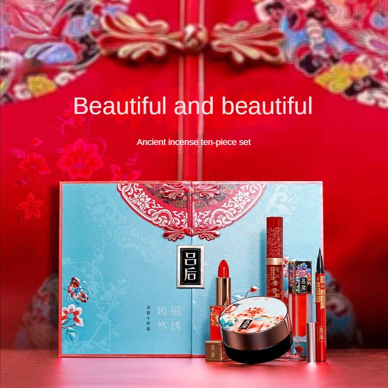 Chinese Style Splendid Yanran Cosmetic Makeup Set Box Mushroom Head Air Cushion Bb Cream Concealer Lipstick Ten-piece Gift Box