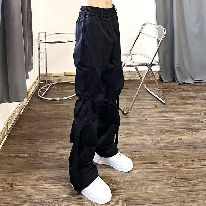 IEFB High Street Pleated Overalls Men's Pants Fashion Loose Straight Button Casual Male Trousers Solid Color Darkwear 9A6007
