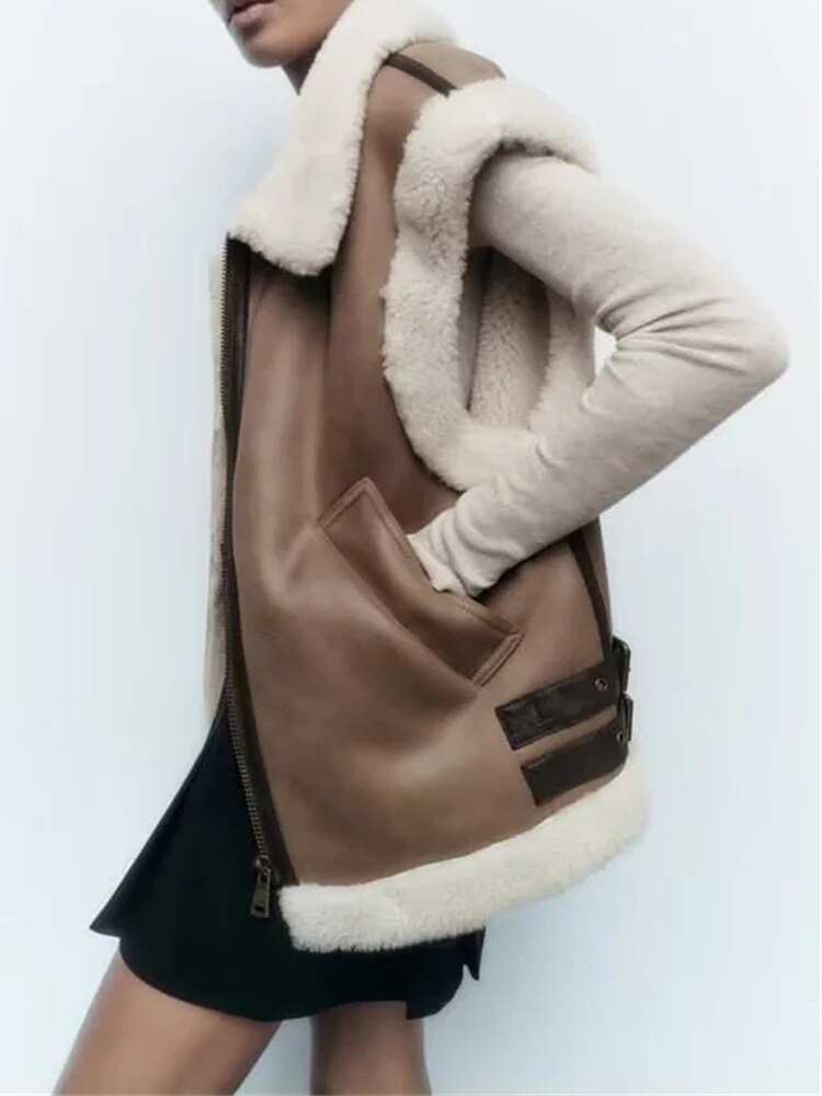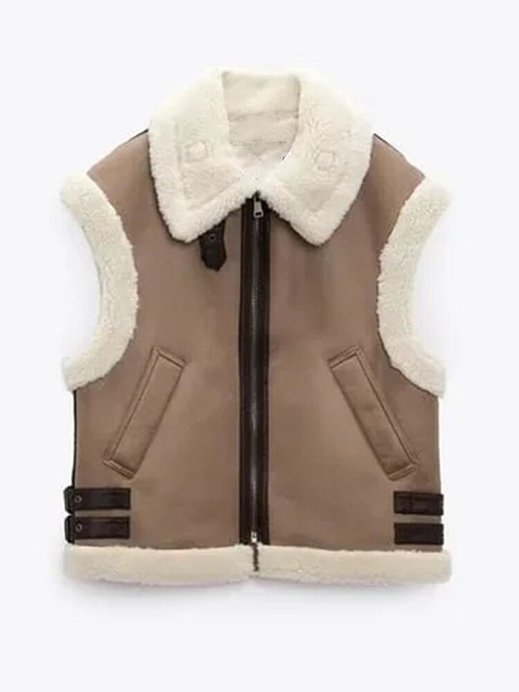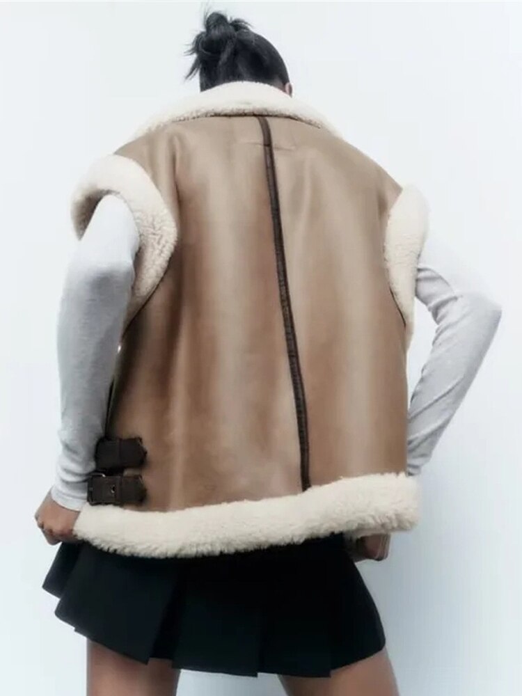 Vest Coats Women Sleeveless Jackets Female Autumn Winter Fleece Thick Warm Waistcoat Vintage Fashion Splice Sleeveless Jacket