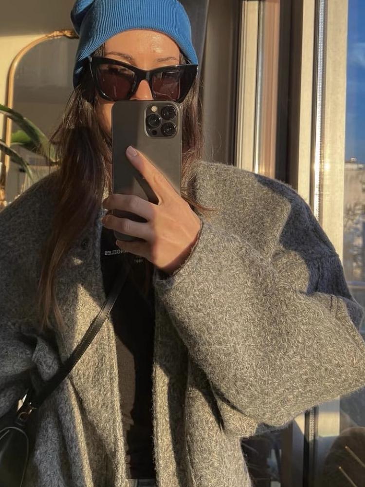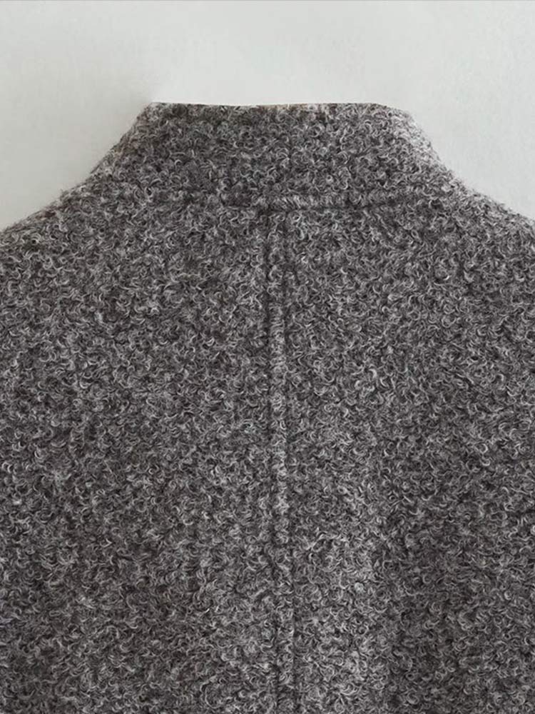 Women's Casual Loose Stand Collar Jackets 2023 Spring Warm Grey button Long Sleeve Bombers Fashion Plush Solid Female Outwear