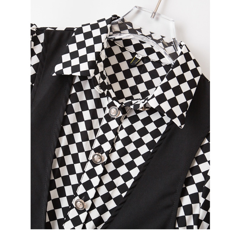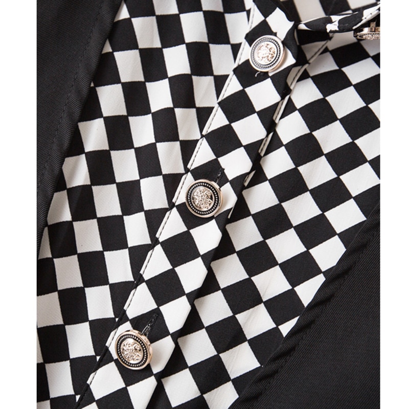 Summer Elegant Women Short Sleeve Dresses Office Ladies Plaid Patchwork Fake Two Pieces Dresses For Women Vestidos