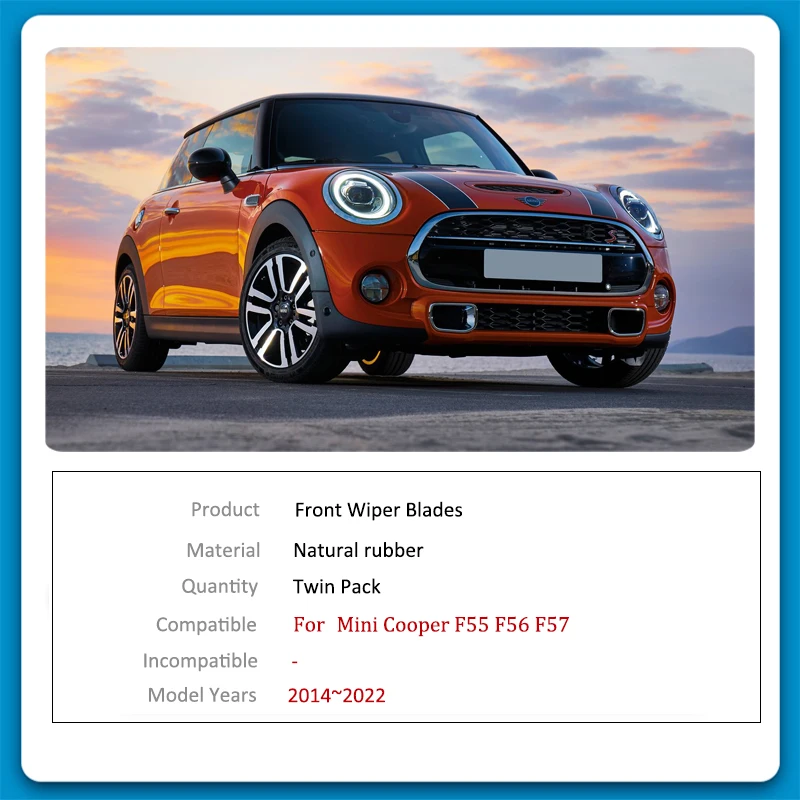 Front Wiper Blades For Mini Cooper F55 F56 F57 2014~2022 Twin Pack PREMIUM BEAM/Flat Wiper Blades