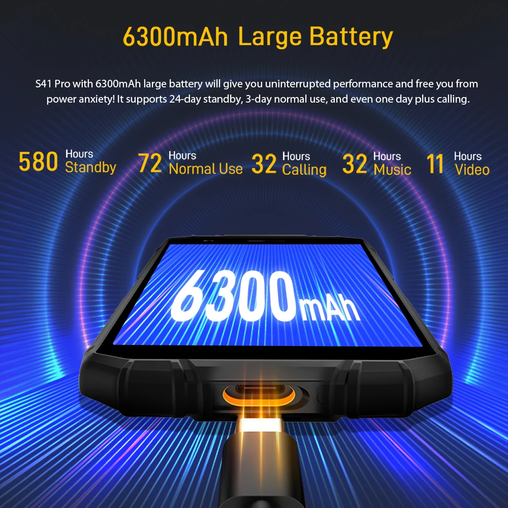 Accessories: 1 x S41 Pro Smartphone 1 x USB Type-C Cable 1 x EU Charger(5V/1A) 1 x Anti-explosion film(pre-applied) 1 x Anti-explosion film 1 x Wrist rope | Network: 2G GSM:B2/3/5/8 3G WCDMA:B1/2/4/5/8 4G FDD:B1/2/3/4/5/7/8/12/13/17/18/19/20/25 / 26/28A/28B/66 TDD:B38/40/41 | |||