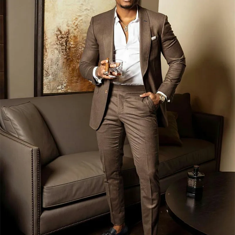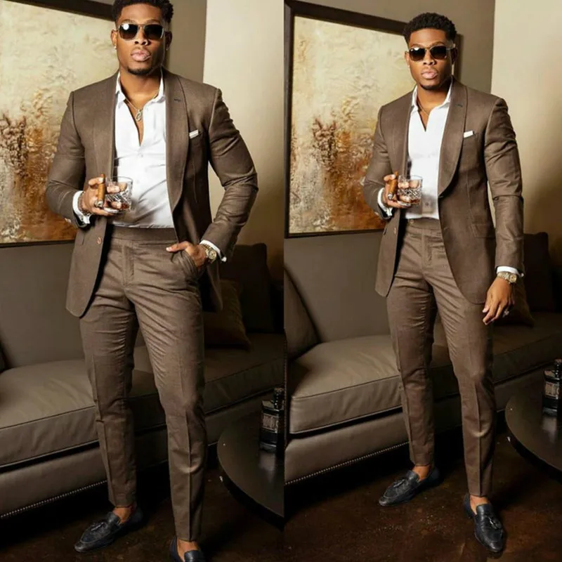 2023 New Arrival Mens Wedding Suits Brown Suit Tuxedo Pants 2 Piece Groom Slim Fit Shawl LapelProm Party Blazer Costume Homme