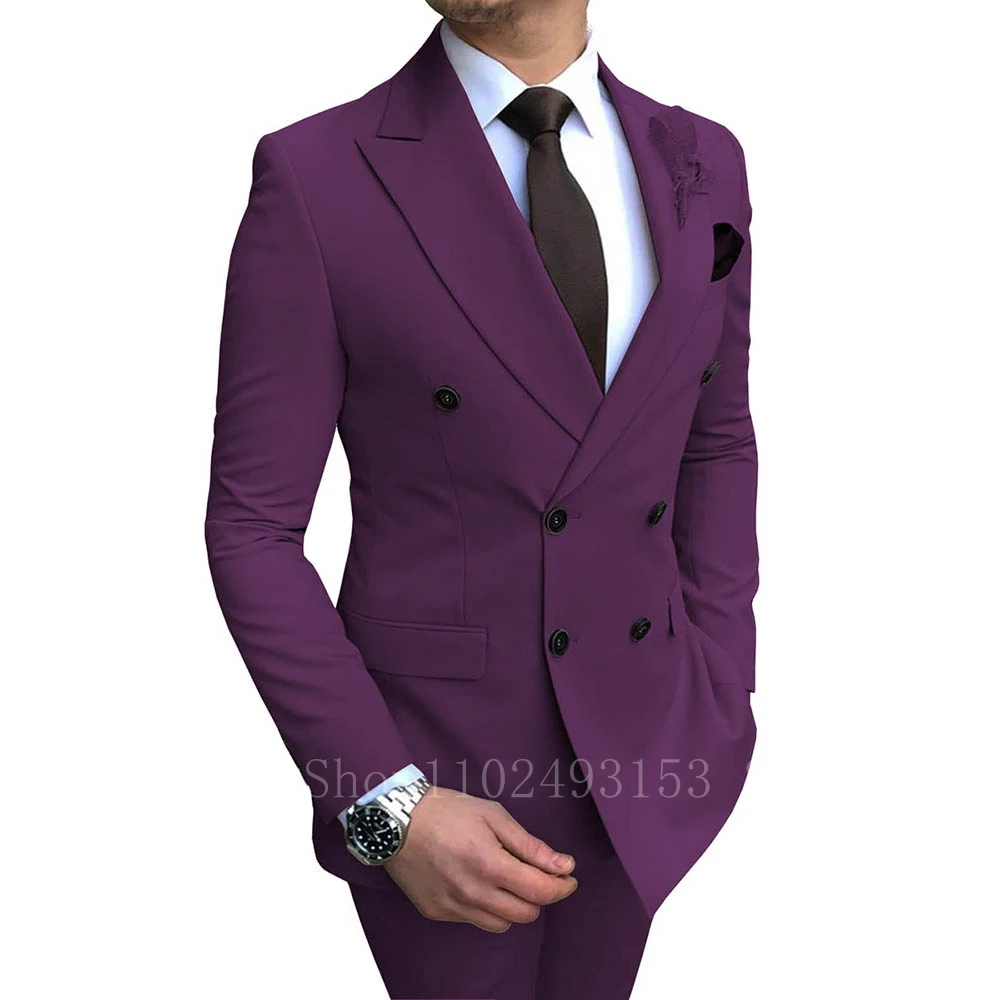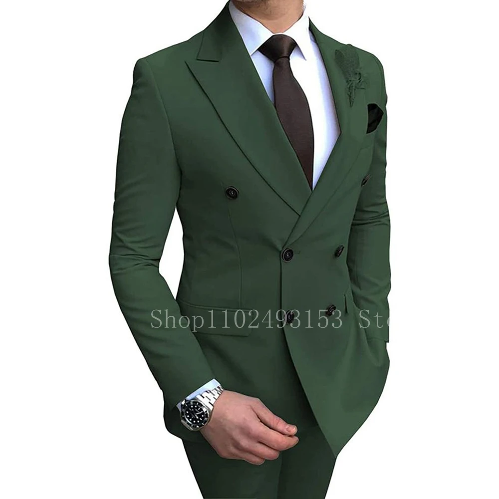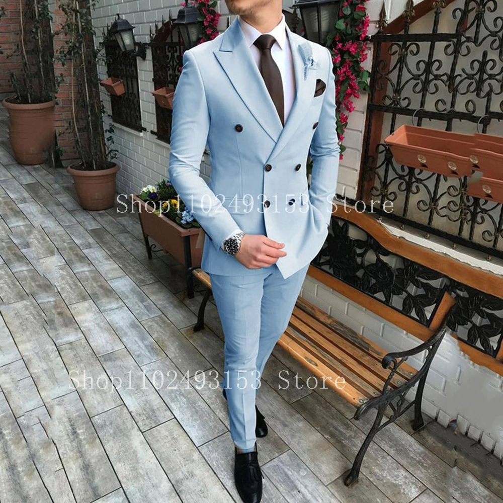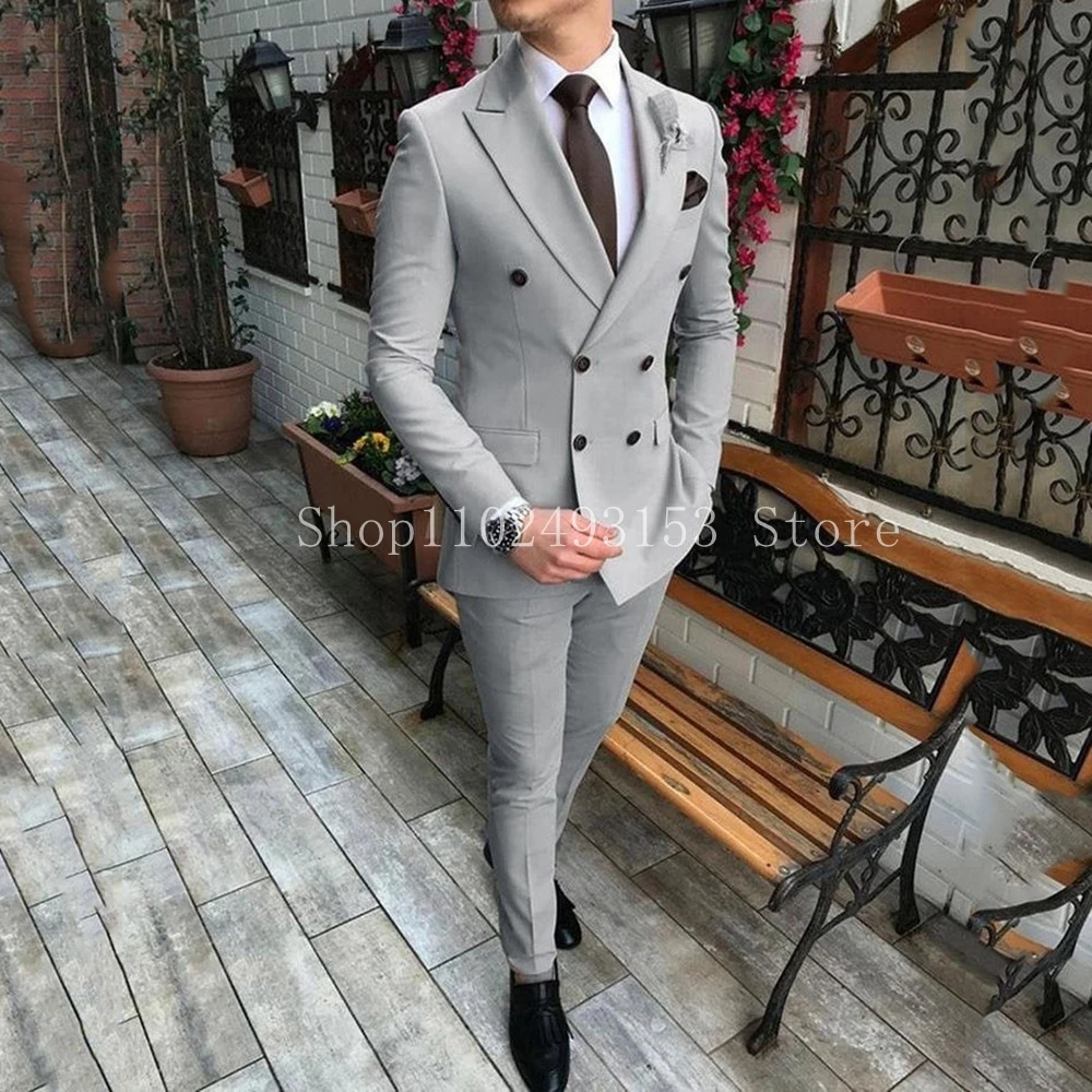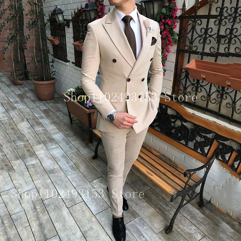 Bespoke Elegant Suits For Men 2 Pieces Beige Peak Lapel Double Breasted Slim Fit Classic Formal Wedding Dress Trajes De Hombre