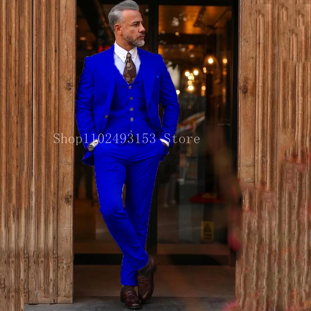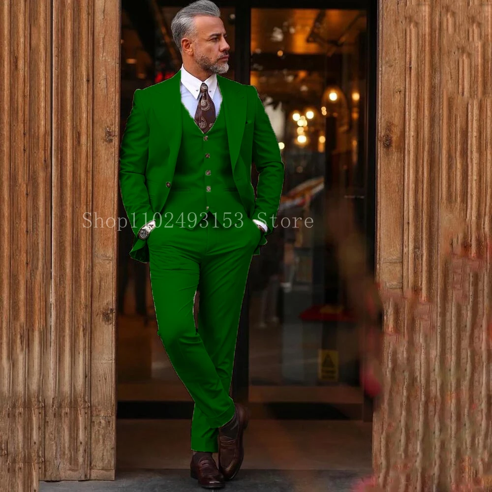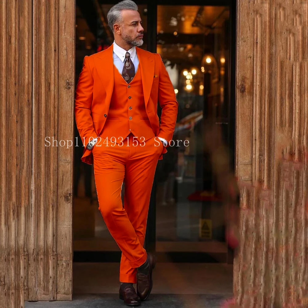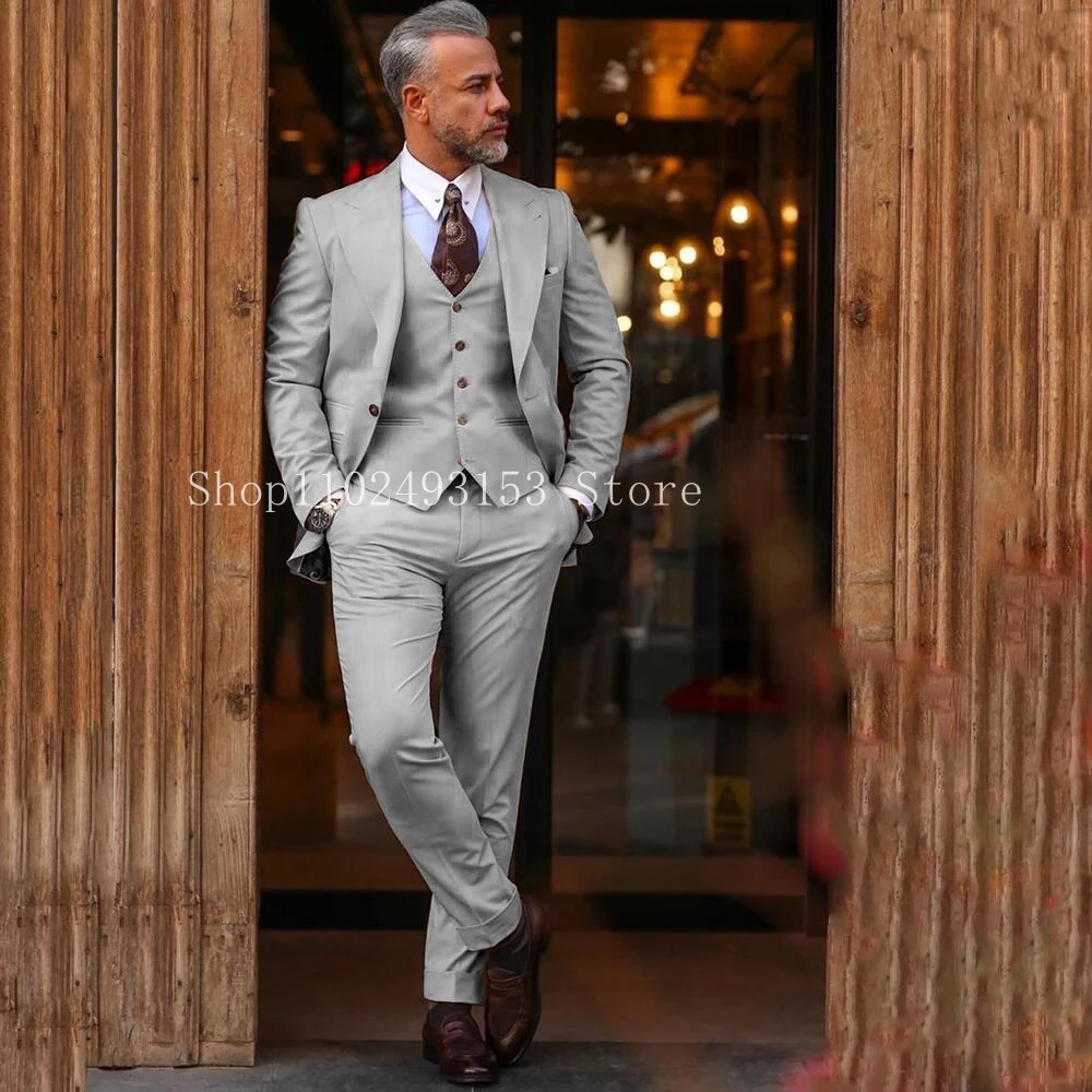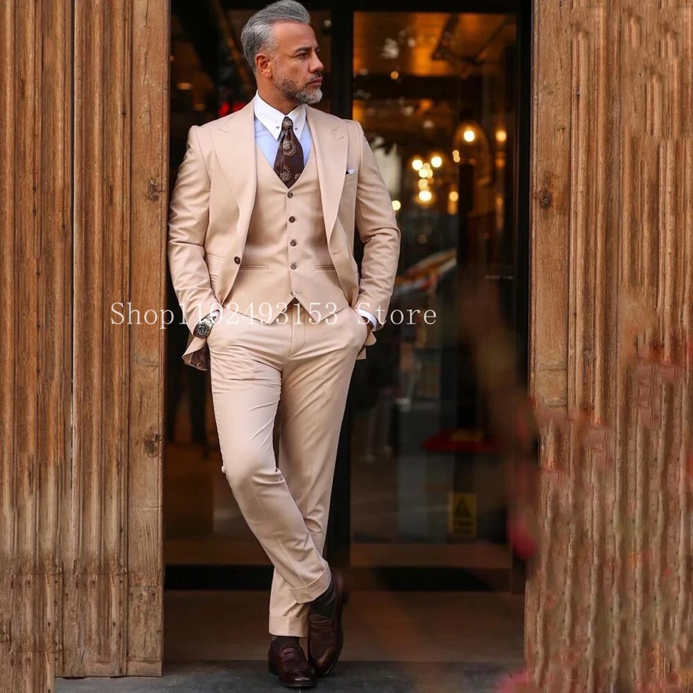Latest Design Beige Male Suits For Wedding 3 Pieces Peak Lapel Slim Fit Formal Business Groom Wear Blazer Vest Pant Costum Homme