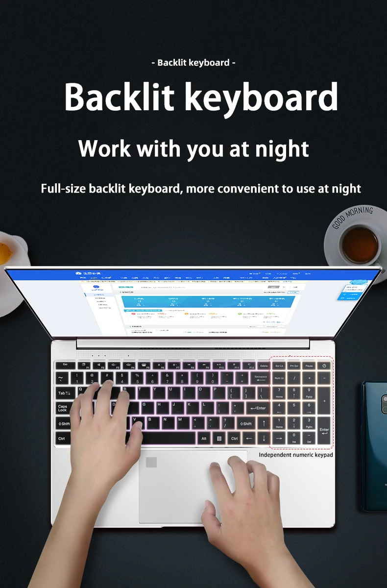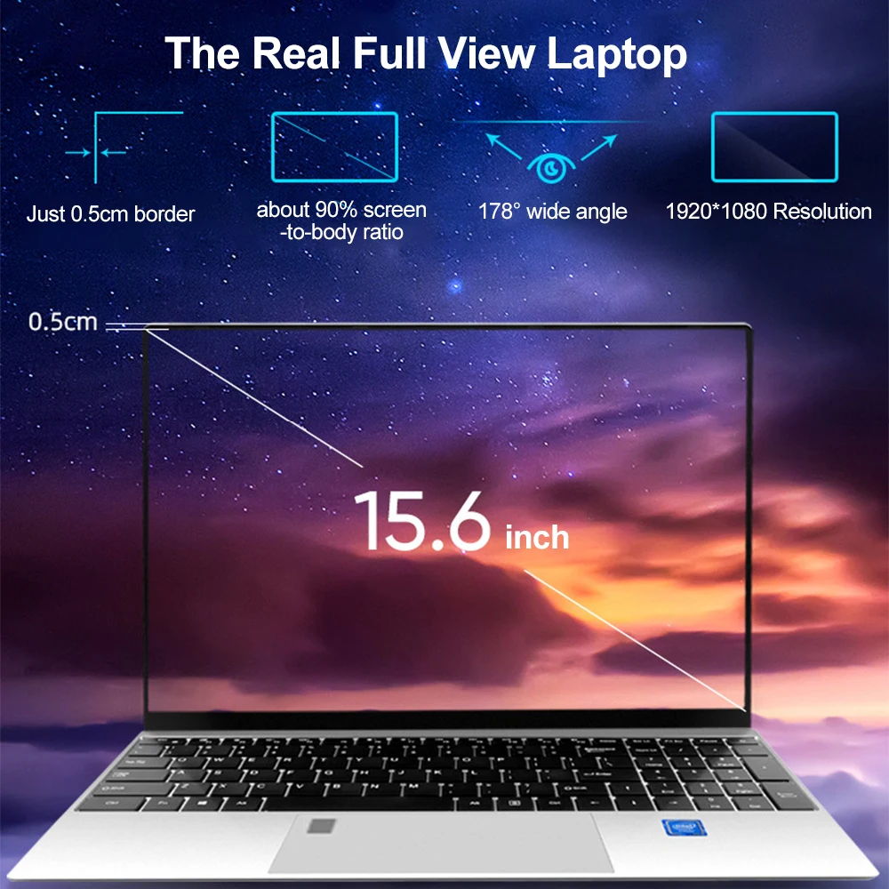 15.6 Inch 16GB DDR4 RAM Student Laptop Intel Quad Core 1TB/512G/256G ROM Cheap Business Netbook for Online Classroom Gaming