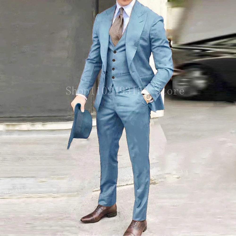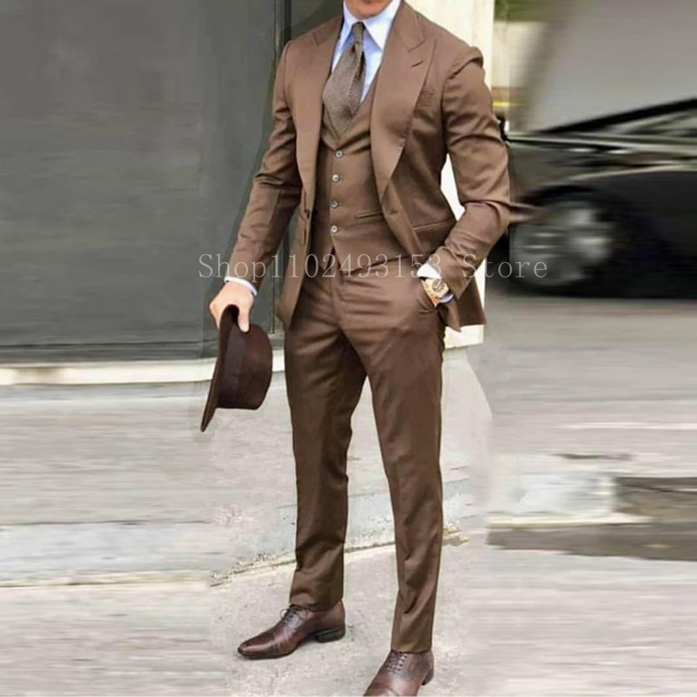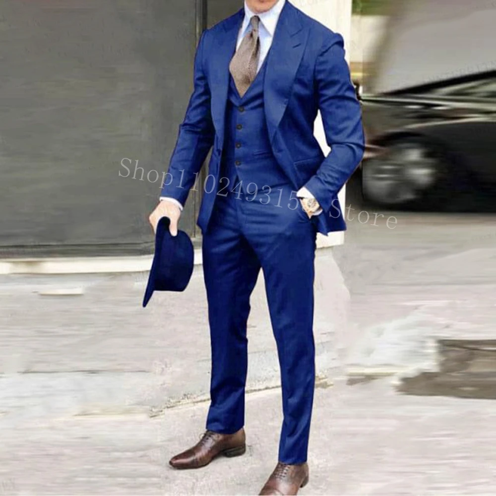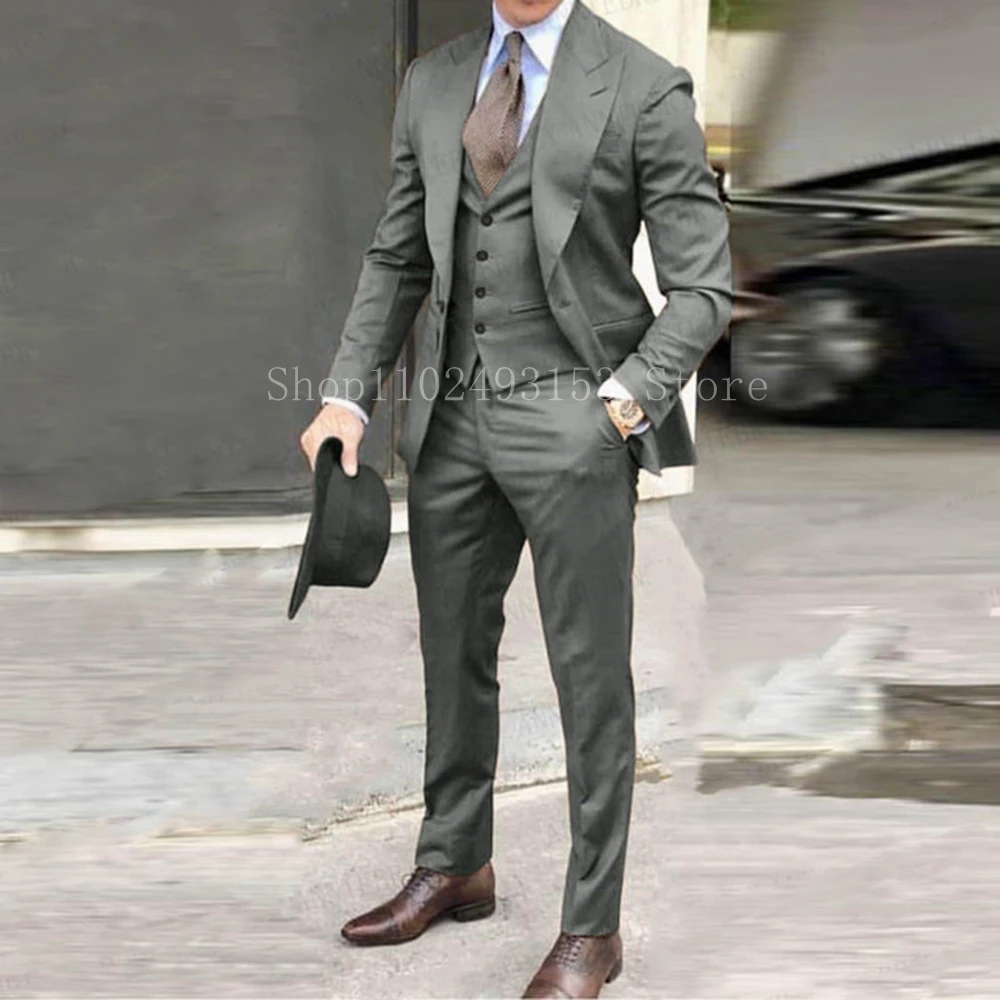New Fashion Tailor Made Men Suits 2023 Slim Fit Peak Lapel 3 Pieces Elegant Formal Business Wedding Suit Set Trajes De Hombre