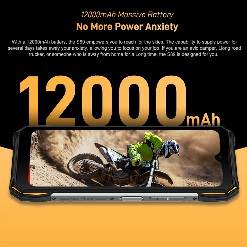 With a 12000mAh battery, the S89 empowers you to reach for the skies. The capability to supply power for several