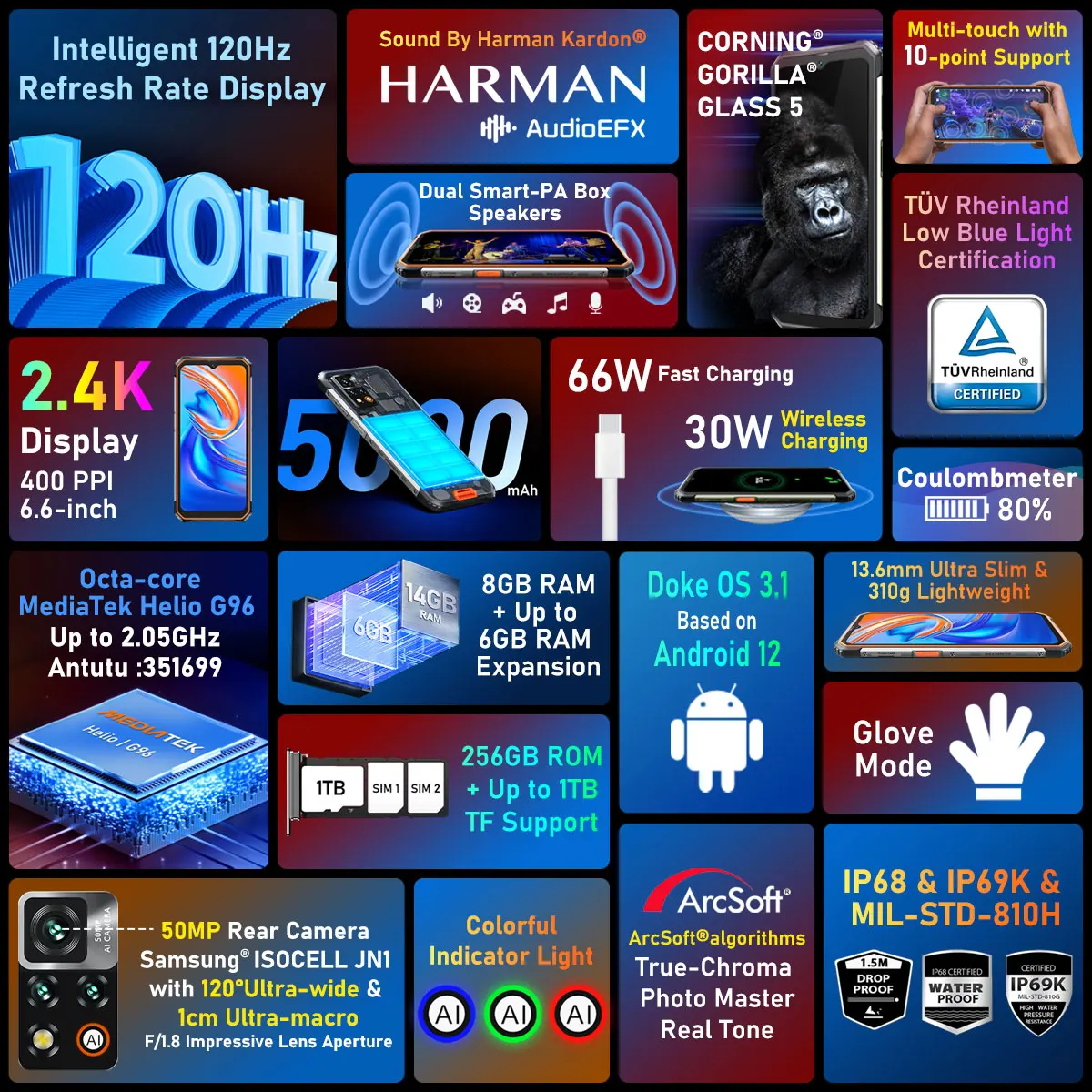 Global Version Blackview BV9200 MediaTek Helio G96 8GB 256GB 66W Fast Charge 120HZ Rugged Smartphone Cellphone Android 12