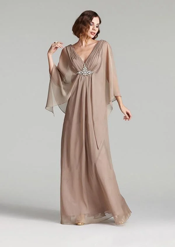 Champagne Long Mother Of The Bride Dress V Neck Silk Crystal With Cape Cheap Wedding Banquet Ceremony Evening Prom Mother Gowns