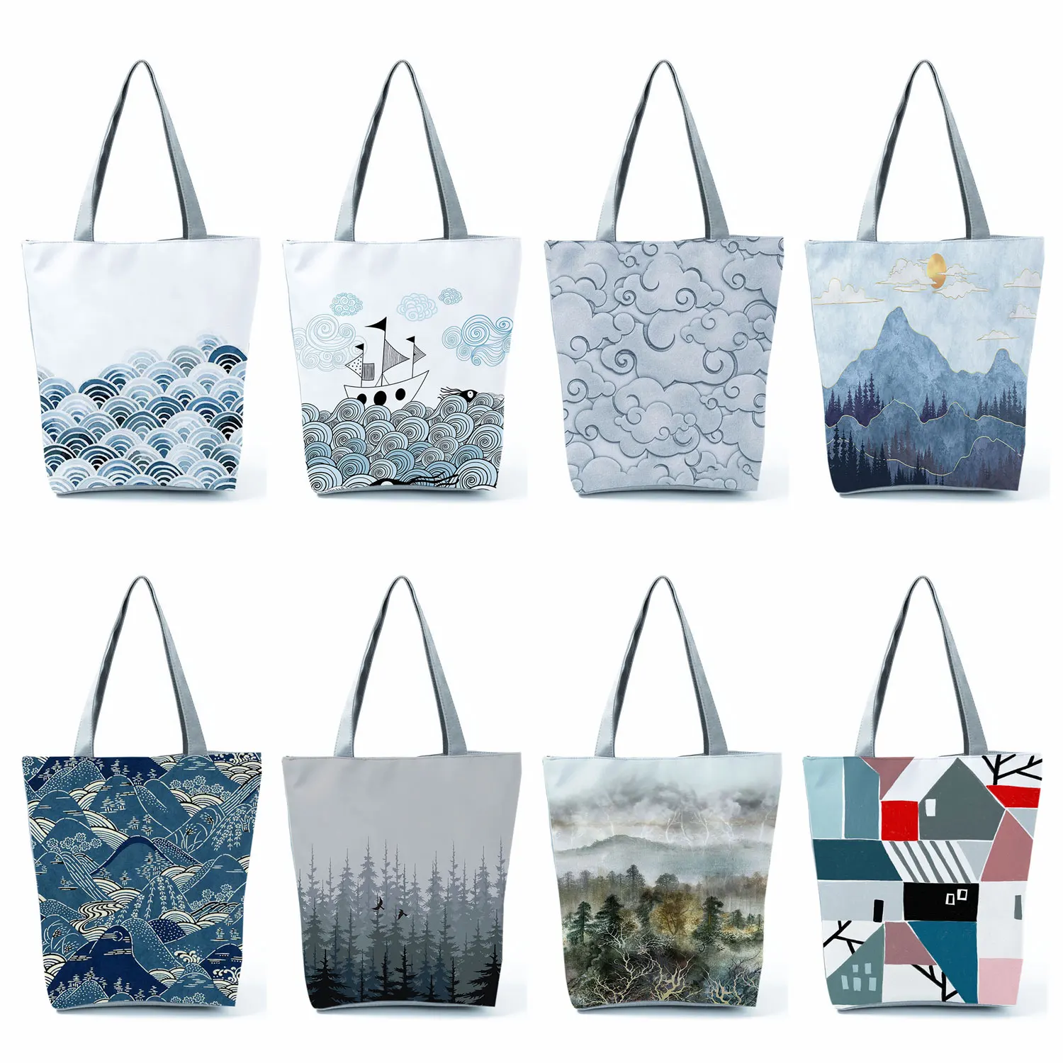 Beautiful Landscape Women's Handbag Foldable Harajuku Eco Totes Daily Casual Bags Classmate Gift Custom Pattern Female Shopper
