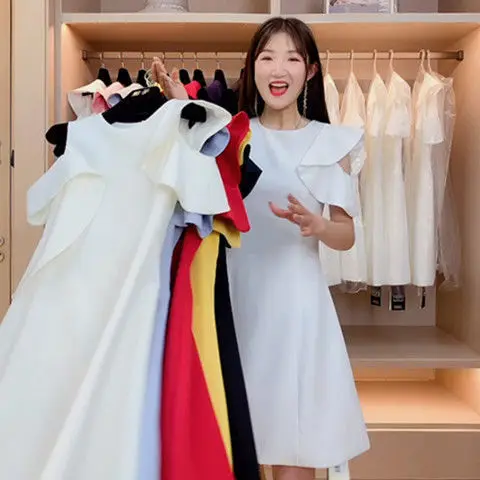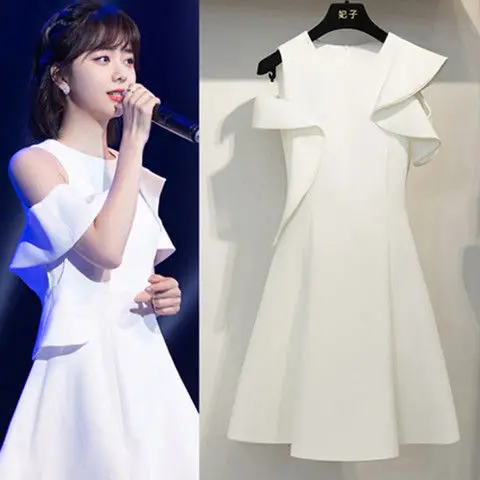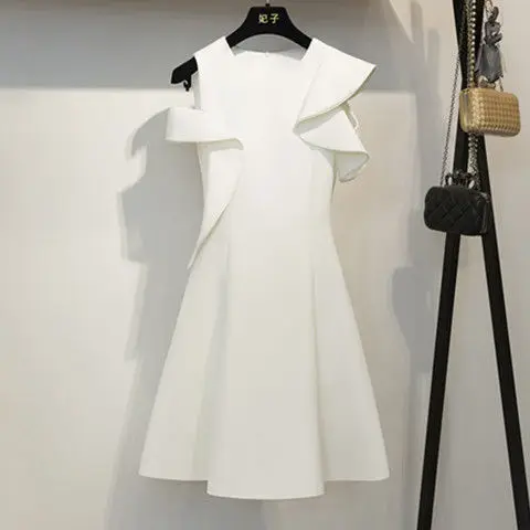 Faymusty Chic Summer New 2022 Korean Fashion Lady Elegant White Sleeveless Dress Women's One-Piece Hair Dresses Vestido Feminino
