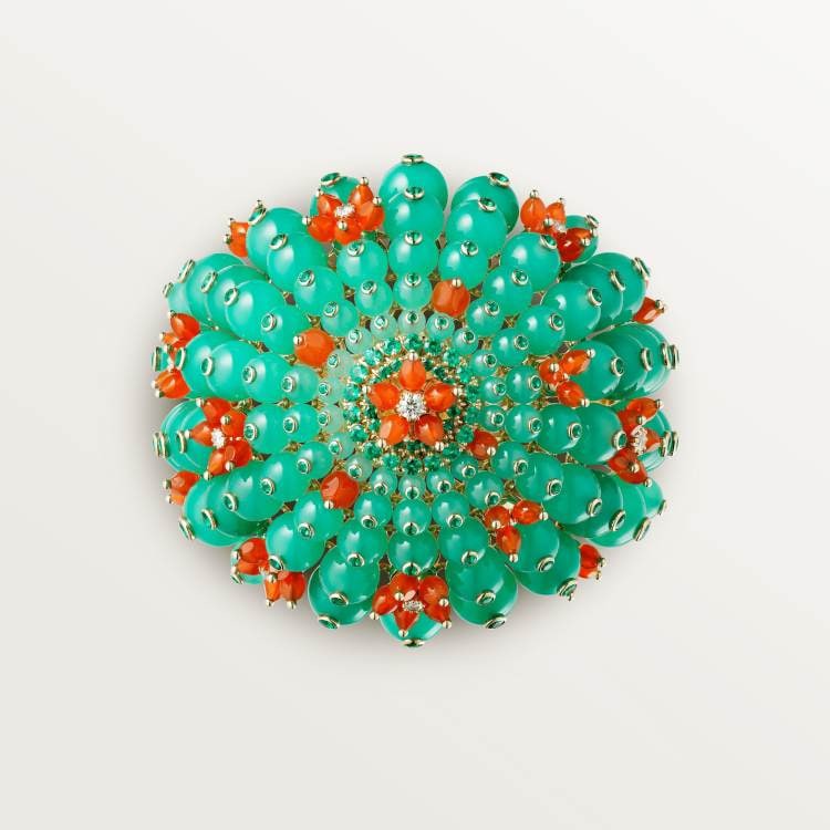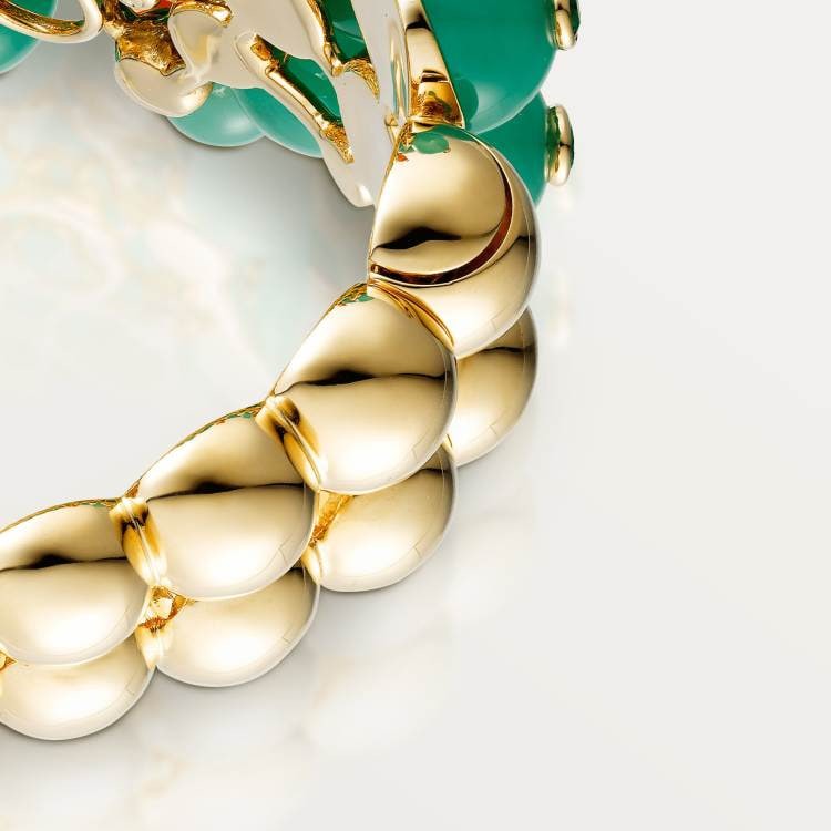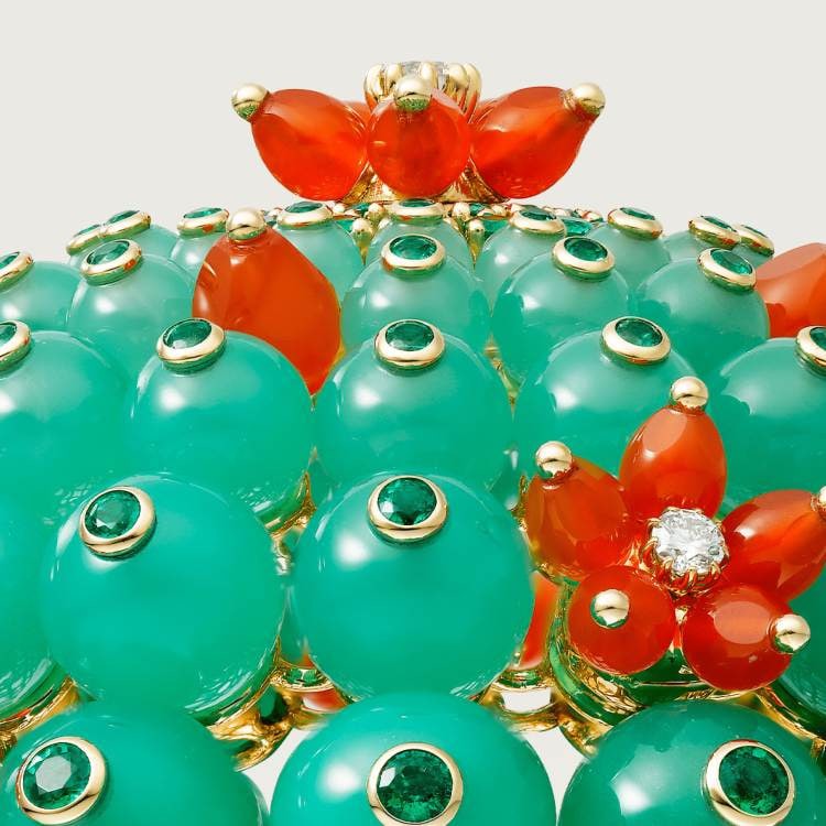 CACTUS DE CARTIER bracelet, 750‰ yellow gold, chrysoprase, emerald, carnelian, 8 brilliant-cut diamonds, total weight 0.61 carat (applicable size: 17).