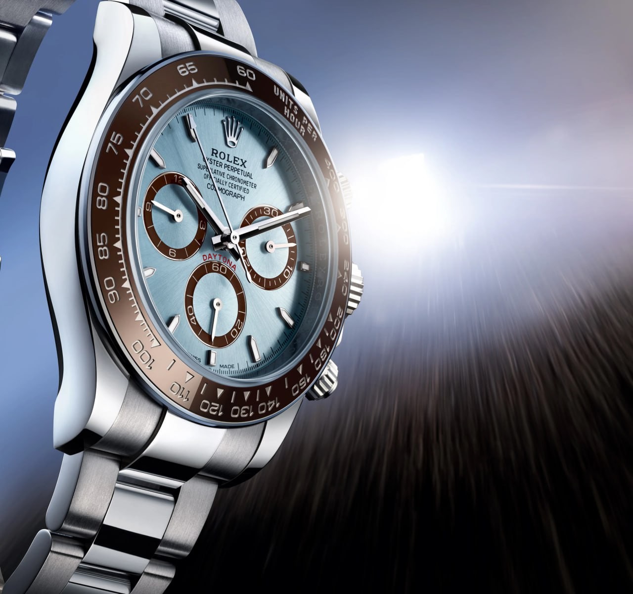 On the one hand, the simplified structure frees up more space for the barrel and provides a power reserve of approximately 72 hours. On the other hand, the vertical clutch ensures that the chronograph remains precise over long periods of time. This is complemented by the excellent performance of the Chronergy escapement and Parachrom hairspring. Screw-down pushbuttons and a three-clasp winding crown with triple waterproofing keep the Oyster case sealed