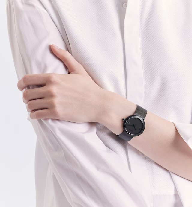 The D de Dior black matte watch is paired with a Milanese strap. Its soft and shiny silk-like texture fully demonstrates the exquisite watchmaking craftsmanship.