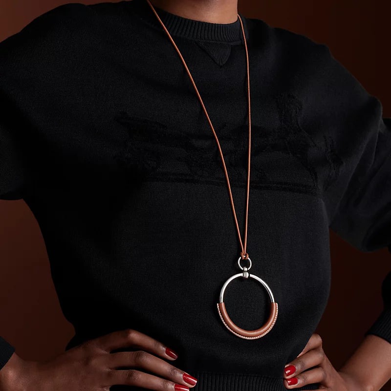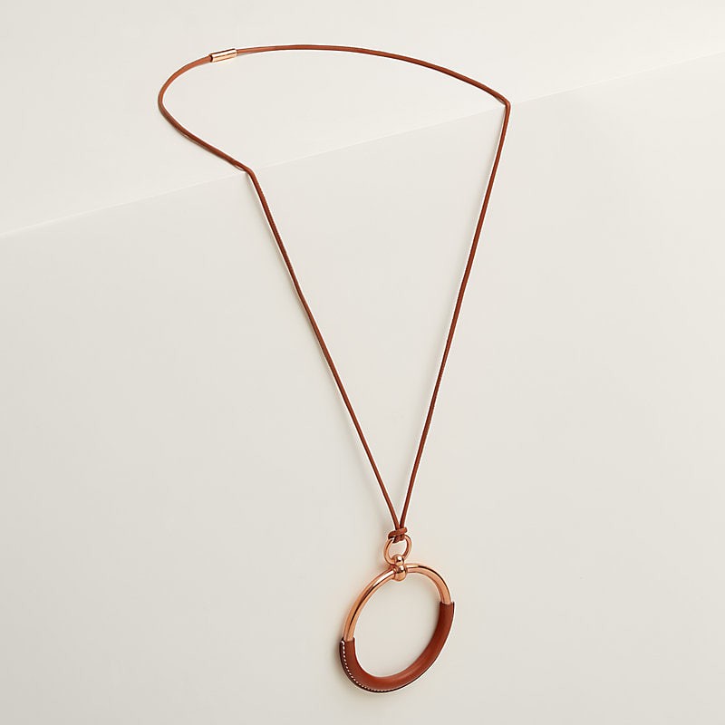 Metal and Barenia calfskin pendant with rose gold-plated metal hardware.