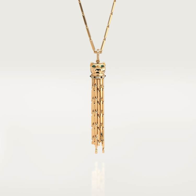 PANTHÈRE DE CARTIER necklace, 750‰ yellow gold, black lacquer, set with 18 round brilliant-cut diamonds totaling 0.34 carats. Emerald, onyx.