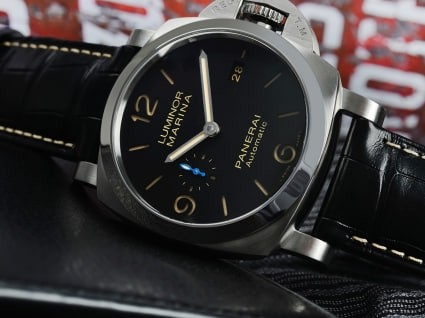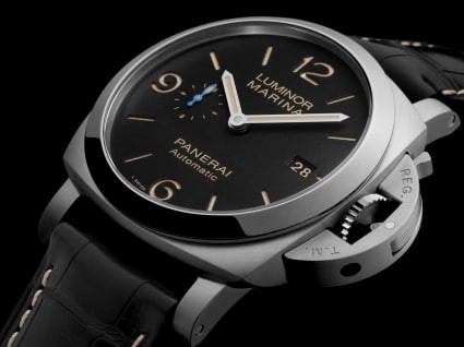 Dial material Matte black dial with sandwich structure; Arabic numerals and hour markers are coated with green Super-LumiNova® luminous coating, green luminous display; small seconds dial at 9 o'clock, and date display at 3 o'clock.
