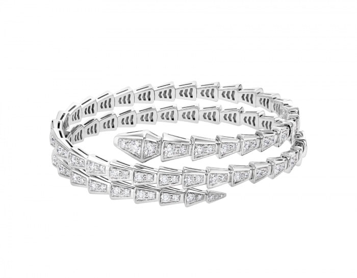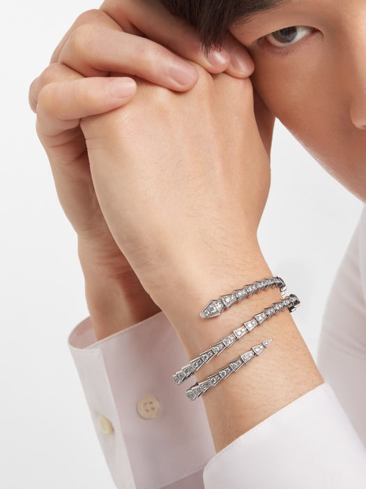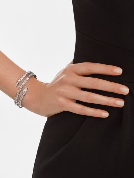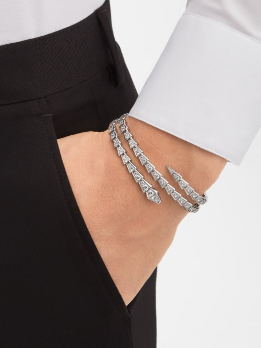 THE SERPTI VIPER COLLECTION COMBINES INNOVATION AND CUTTING-EDGE DESIGN IN AN ULTRA-MODERN INTERPRETATION OF BVLGARI'S CLASSIC CREATIONS. With geometric patterns and clean shapes, this bracelet depicts the mysterious spirit snake and lingers around the wrist, with delicate scales that are extremely sparkling, revealing the graceful curves of the SERPENTI collection.