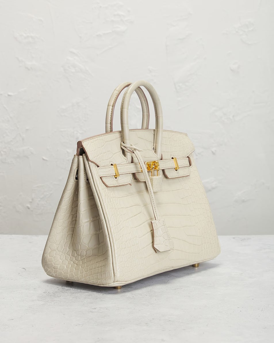 Bên ngoài bằng da cá sấu mờ với lớp lót bằng da